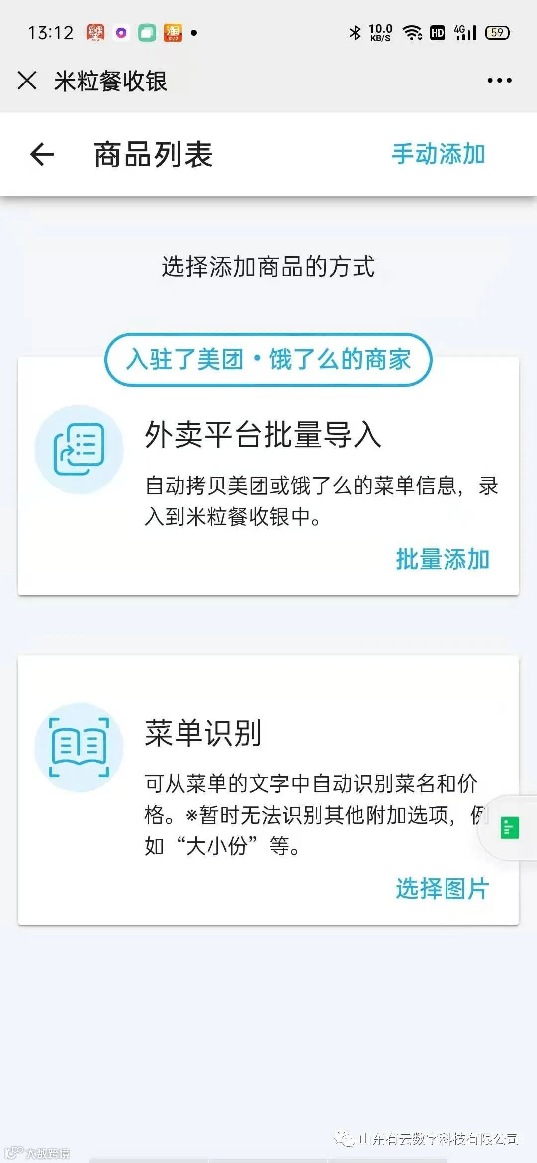 选择要导入已经录入在「美团」或「饿了吗」的菜品