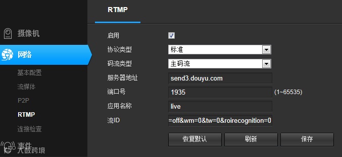 1.配置摄像头rtmp协议;2.分享房间观看直播