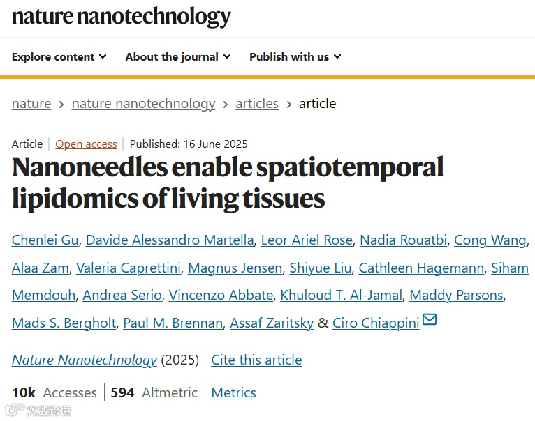 在分子诊断领域,对活体组织进行时空脂质组学研究一直面临着巨大挑战。传统方法往往需要破坏性取样,难以对同一样本进行连续观察,从而限制了对生物体动态变化的理解。近日,发表于《Nature Nanotechnology》的一项创新性研究有望打破这一僵局。该研究由伦敦国王学院的 Ciro Chiappini 团队主导,提出了一种基于多孔硅纳米针的分子印迹工作流程,实现了活体脑组织的重复采样和脂质分布映射,为精准医疗的分子诊断提供了全新视角。