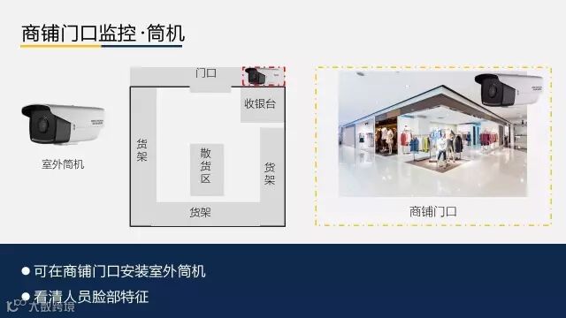 商铺经营者可以在店内的关键区域,如大门口、货架、收银台等关键区域,安装筒机、半球等监控产品,可实现远程看店、客流查看、录像取证、震慑、防盗等基础功能。