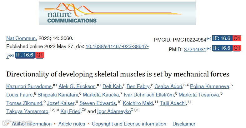 来自瑞典卡罗林斯卡学院的Igor Adameyko教授团队在Nature Communications杂志(IF=16.6)上发表了题为“Directionality of developing skeletal muscles is set by mechanical forces”的研究论文。该研究采用荧光原位杂交、CRISPR/Cas9介导的基因沉默、斑马鱼胚胎实时成像和杂交链反应(HCR)等技术,发现在斑马鱼和小鼠的肢体和面部形态发生过程中,骨骼的发育指导了骨骼肌和其他软组织的定向生长。