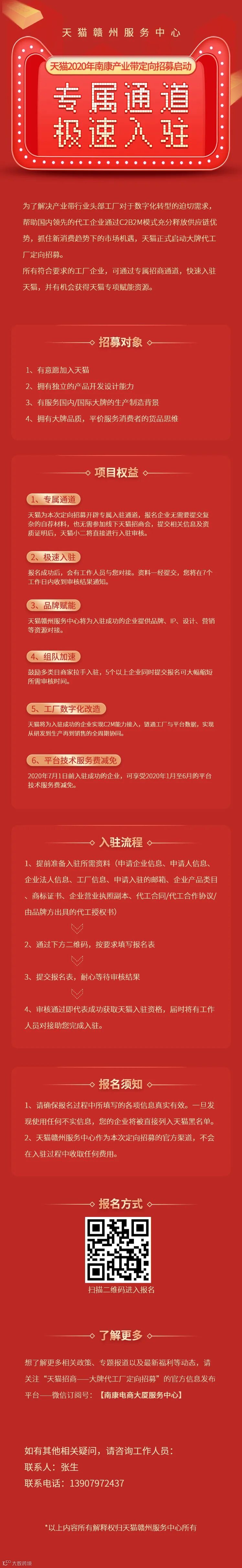 等动态,请关注“天猫招商——大牌代工厂定向招募”的官方信息发布平台——微信订阅号:【南康电商大厦服务中心】。