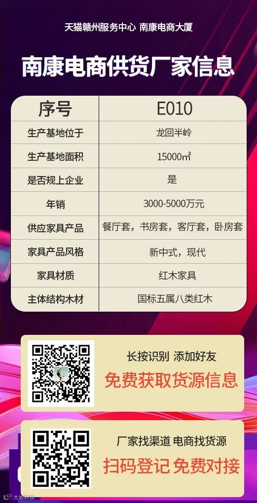本平台致力于免费为家具&电商行业供应需求与品牌商家拓展需求信息的发布,搭建双方合作对接的有效渠道。如有相关需求,请扫描下方二维码,我们将免费为您不定期发布相关需求信息。谢谢配合!敬请关注!