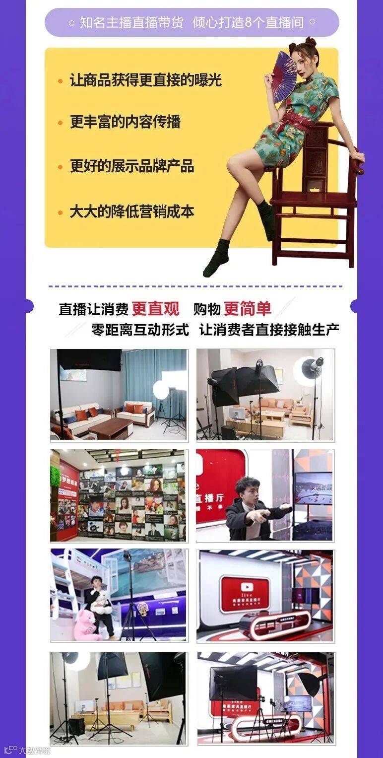 天猫赣州服务中心所在的南康跨境电商产业园,拥有8个专业直播间、主流的专业直播设备以及经验丰富的主播。你只需把产品拉过来,剩下的就交给我们吧!