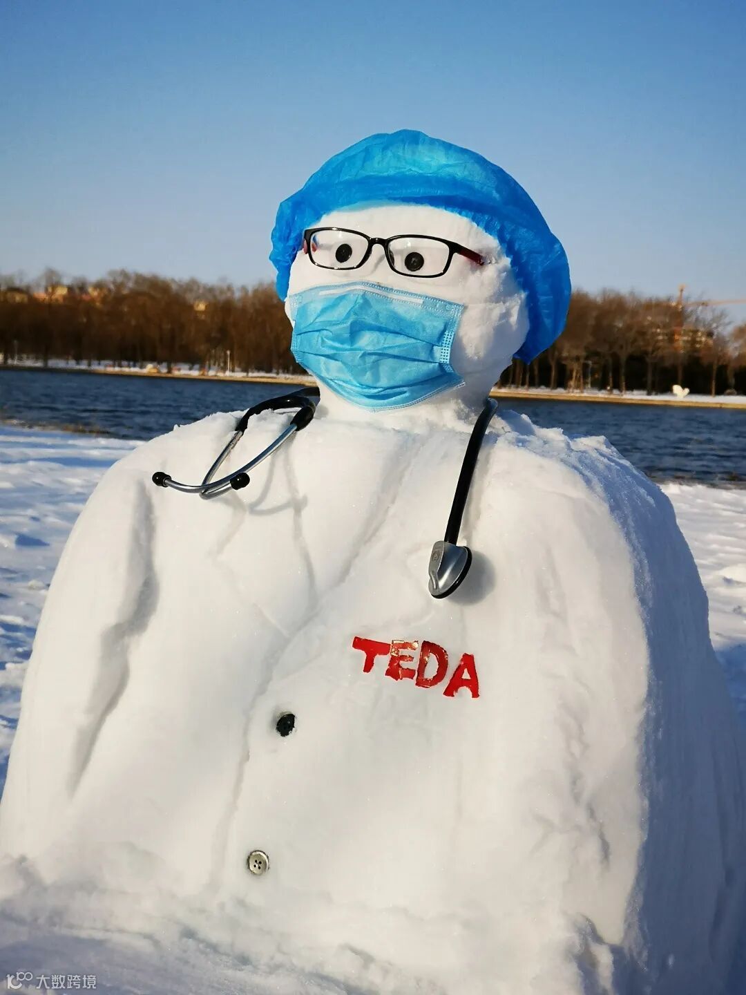 泰丰公园的冬天是宁静的,当冰雪覆盖,总有人们顶风冒雪,只为记录她的美。泰丰公园的冬天也是温暖的,因为这里有滨海泰达人的初心。2月15日凌晨泰达医院第三批3名医疗队员火速集结驰援湖北应对疫情,那天一场大雪让泰丰公园变成了童话世界。泰达医院医生赵伟堆起了一个大大的“泰”医雪人,谨以这个大大的雪人,致敬所有奔赴抗疫一线的“泰”医们。