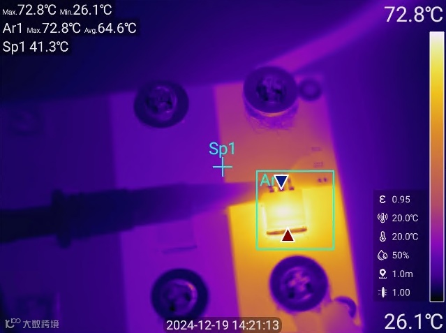 AP1790搭配MOSFET 最高温度:72.8℃