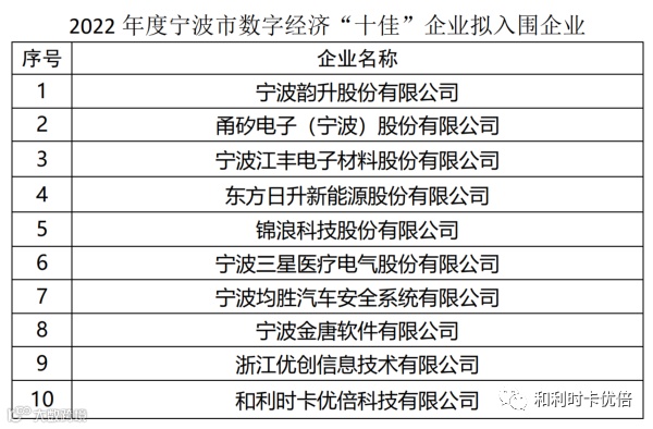 和利时卡优倍拟入围2022年度宁波市数字经济“十佳”企业