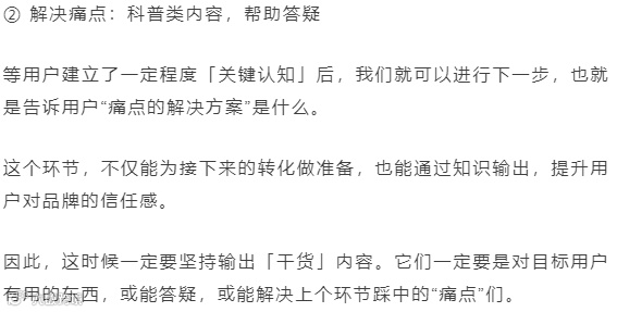 因此,在内容的输出节奏上,我们分成三个阶段来看,包括“提升认知”“解决痛点”和“帮助决策”。