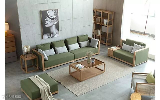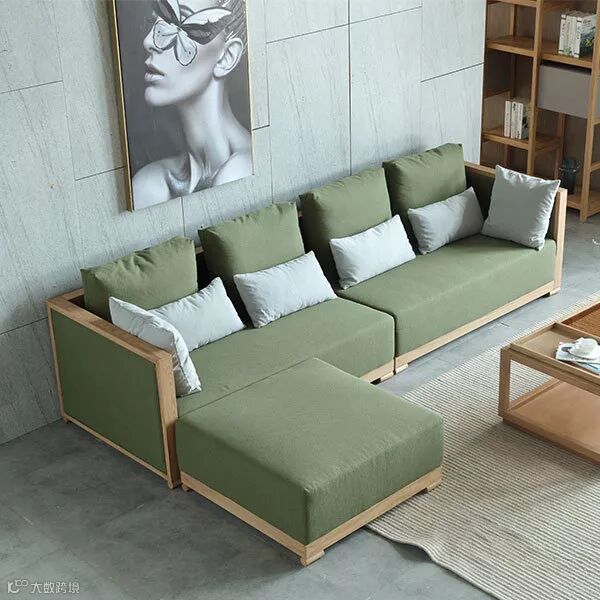 抹茶绿色的棉麻布艺沙发,整体造型的线条简洁流畅,散发着自然清新的魅力。