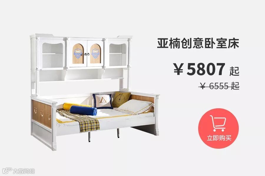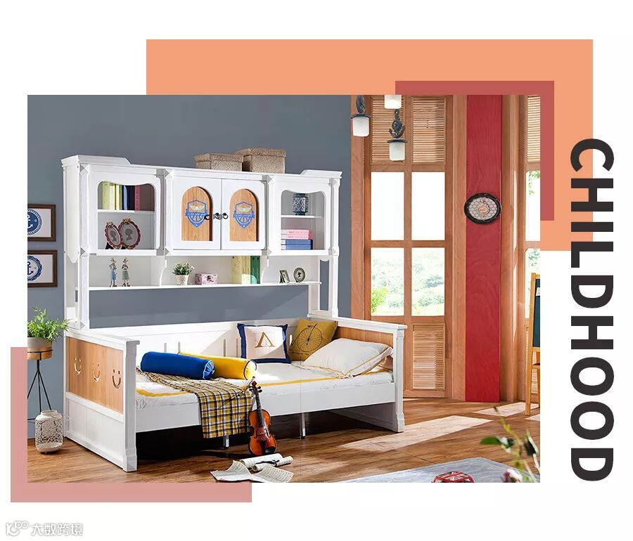 上柜下床的设计充满创意且便捷,孩子睡前取下柜里的书,伴随着书中的故事安然入梦。