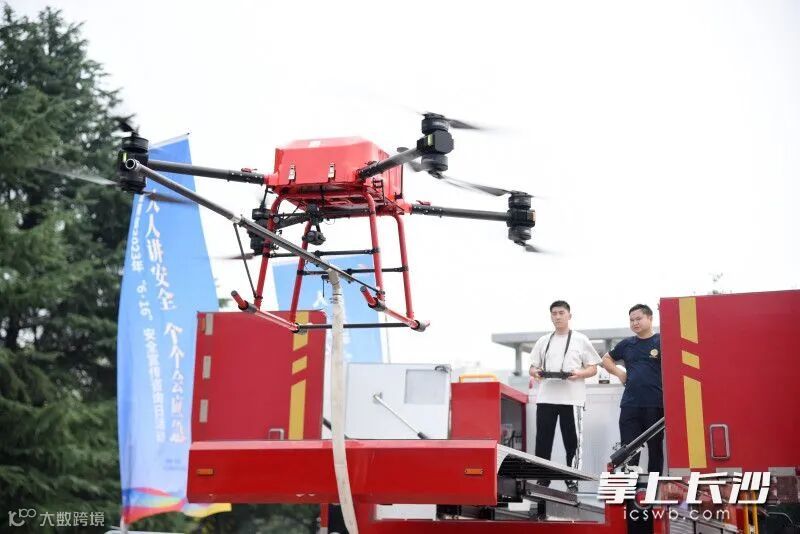 6月16日上午,湖南省2023年“6·16”安全宣传咨询日活动在湖南湘江新区管理委员会第三集中办公区前坪举行。博迅高楼灭火无人机系统应邀请现场展示。
