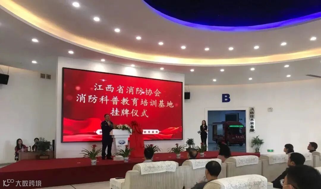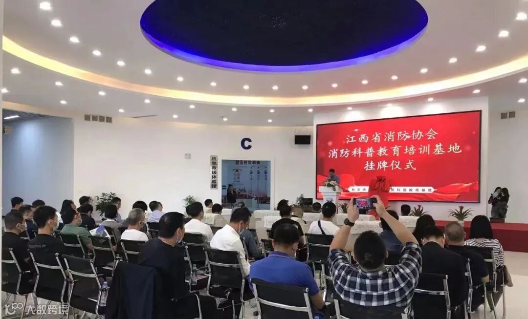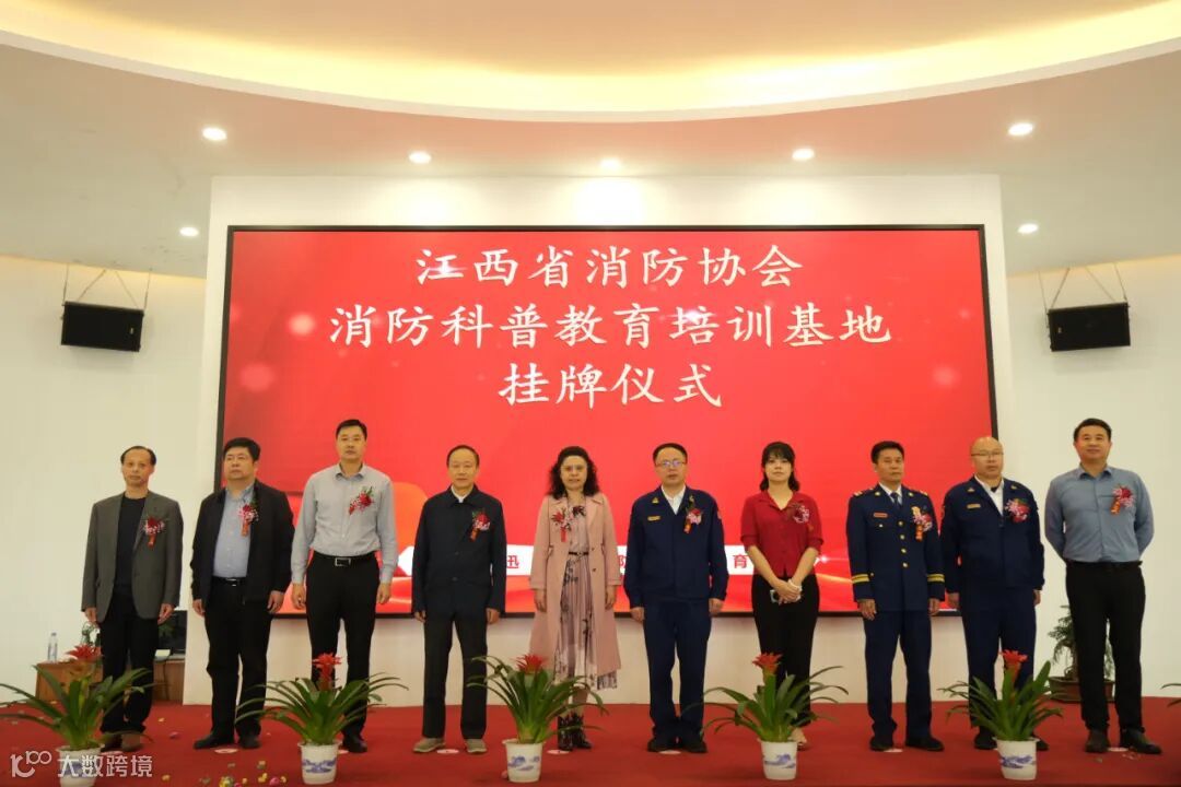 新余市市委常委、宣传部部长张智萍,江西省消防救援总队总工程师朱飞勇,江西省消防协会会长王林波,博迅应急安全科普教育培训基地总经理沈华明共同为“江西省消防协会消防科普教育”基地揭牌。