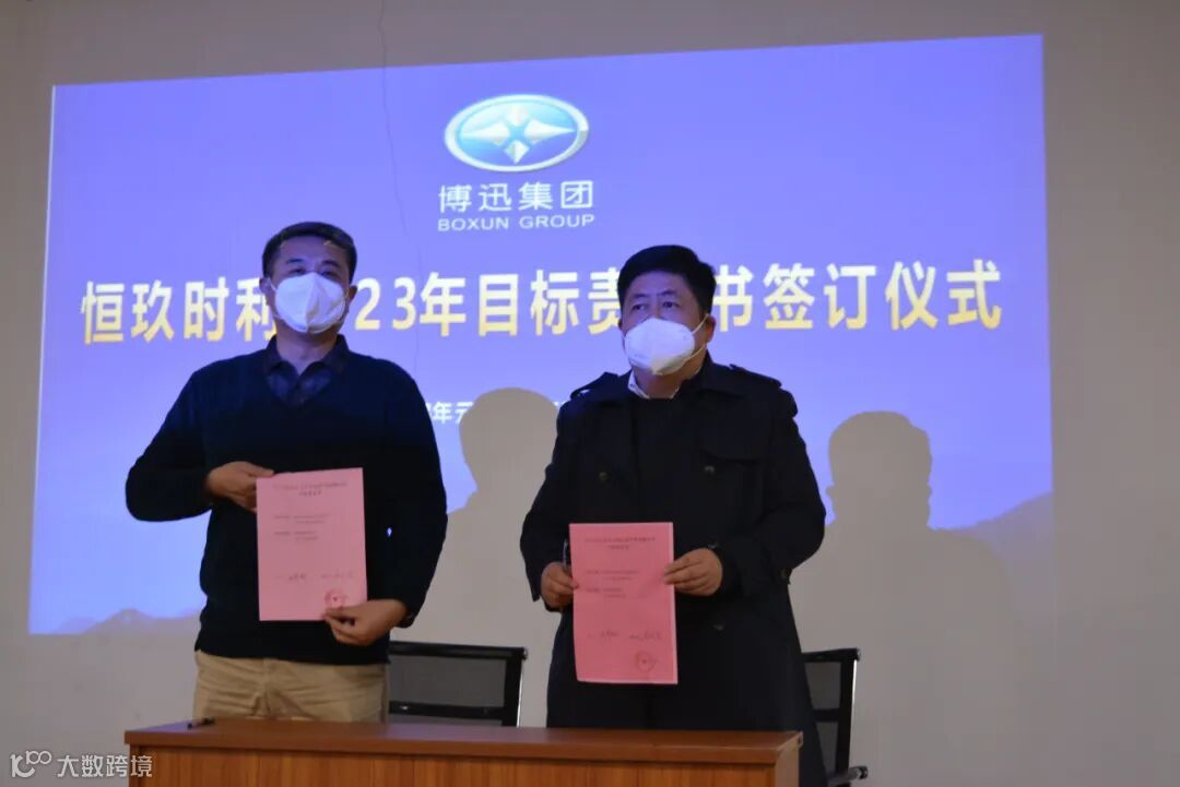 董事长李忻农与恒玖时利沈华明总经理签订2023营销目标书
