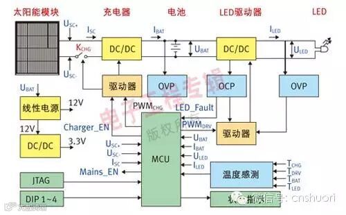 本文介绍的太阳能-LED街灯方案,能自动检测环境光以控制路灯的工作状态,最大功率点追踪(MPPT)保证最大太阳能电池板效率,恒电流控制LED,并带有蓄电池状态输出以及用户可设定LED工作时间等功能。