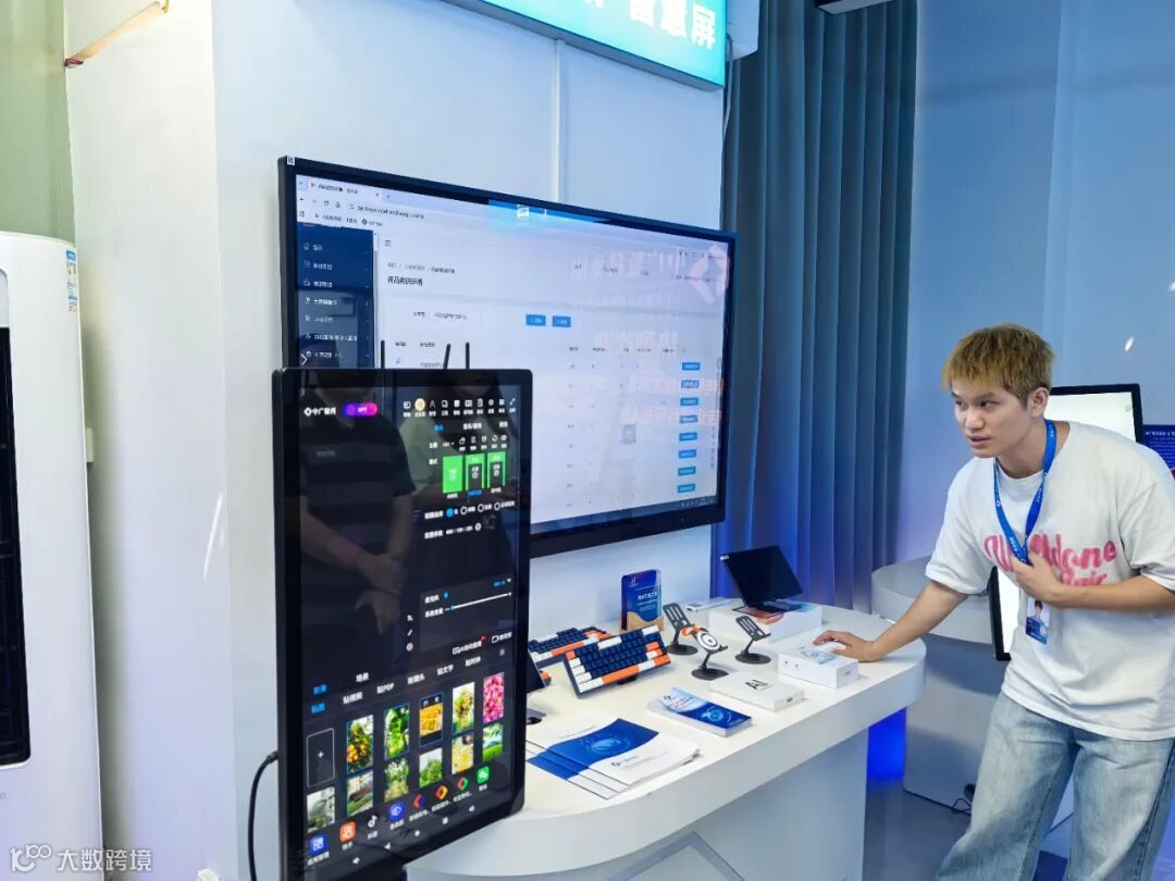 在中广数科集团董事长卢星皓的引导下,林佳一行先后参观了展厅内的AI硬件矩阵与软件平台,从“智能交互终端”到“数字商业赋能系统”,全方位感受AI 技术对电子商务行业的变革力。