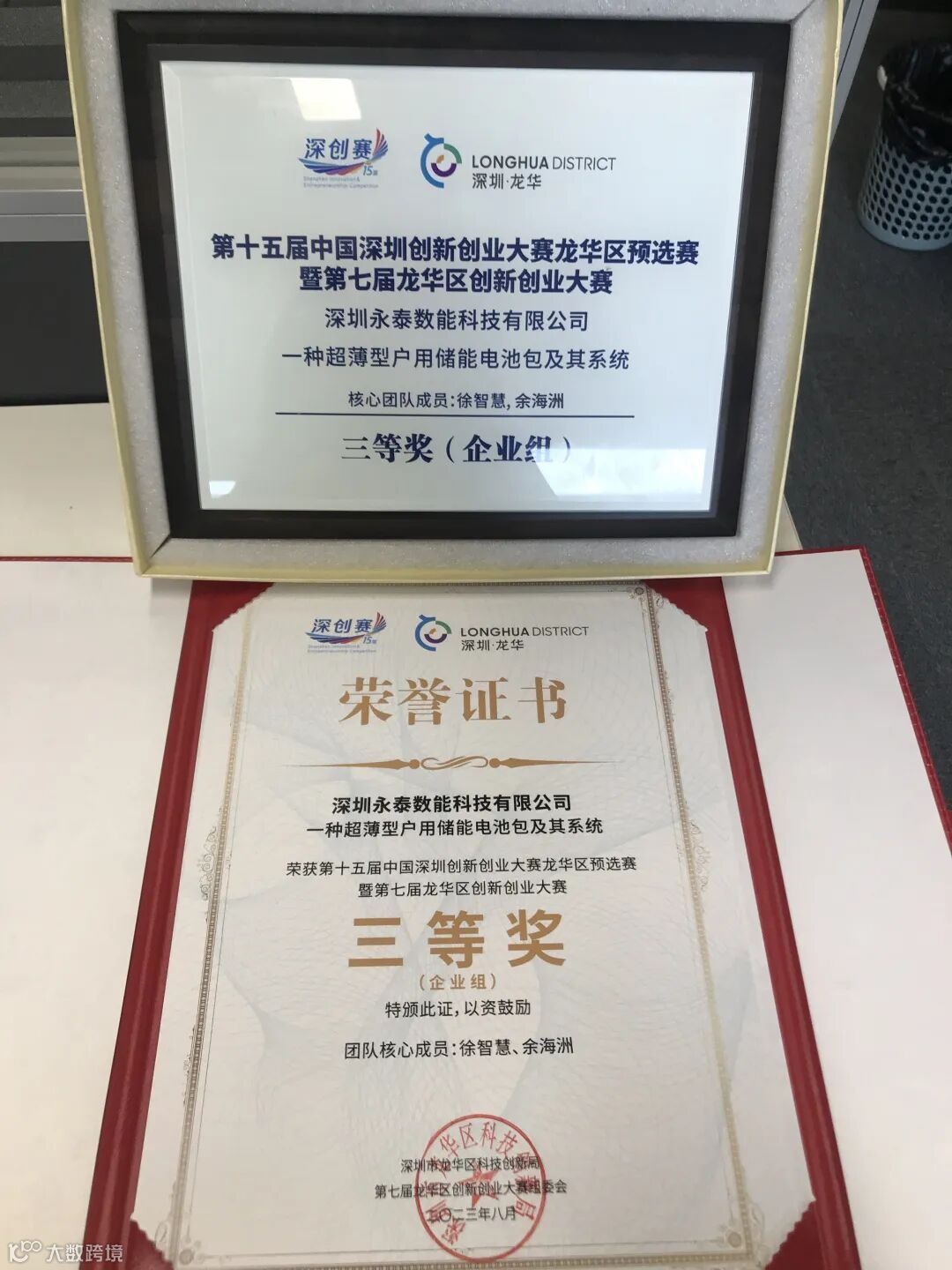 8月31日,第十五届中国深圳创新创业大赛龙华预选赛暨第七届龙华区创新创业大赛颁奖典礼在深圳市龙华区捷顺科技中心国际会议中心成功举办,永泰数能凭借“一种超薄型户用储能电池包及其系统”创新项目,在754个参赛项目中脱颖而出进入决赛,最终与60个参赛项目展开激烈比拼,斩获企业组三等奖。