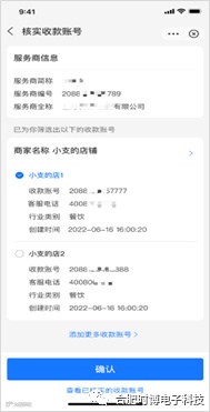 3)选择当前服务商名下的收款账号;注意:只有商户全称与所注册商家名称一致的收款账号smid才能进行授权;