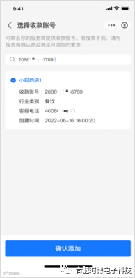 如待绑定列表中无对应的收款账号smid,可通过“添加更多收款账号”进行添加,主动搜索对应的收款账号smid,添加至待绑定列表后完成确认。