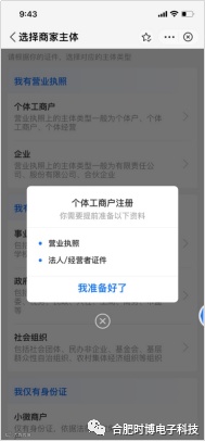 2)根据商家类型选择不同主体类型,填写联系人信息,并提交对应要求的资料;