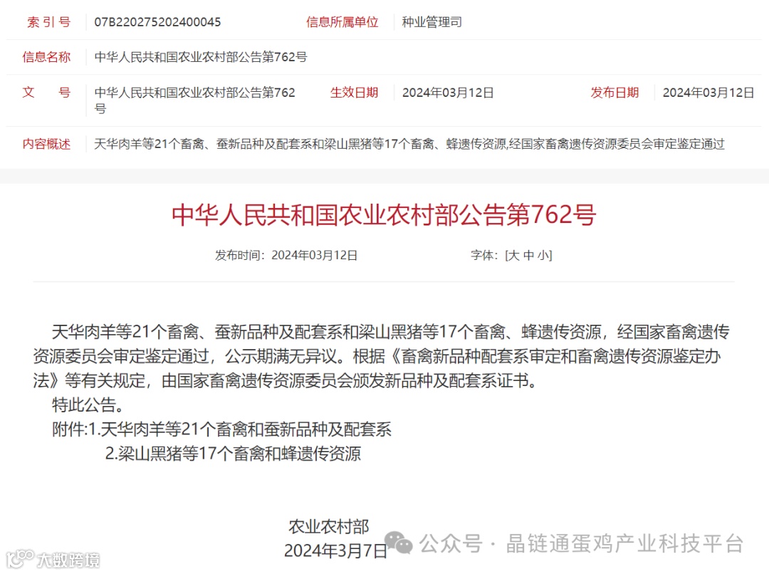 农业农村部发布公告,2个蛋鸡新品种(配套系)通过国家畜禽资源委员会审定。
