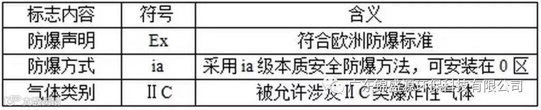 注 : 该标志中无温度组别项 , 说明该仪表不与爆炸性气体直接接触。
