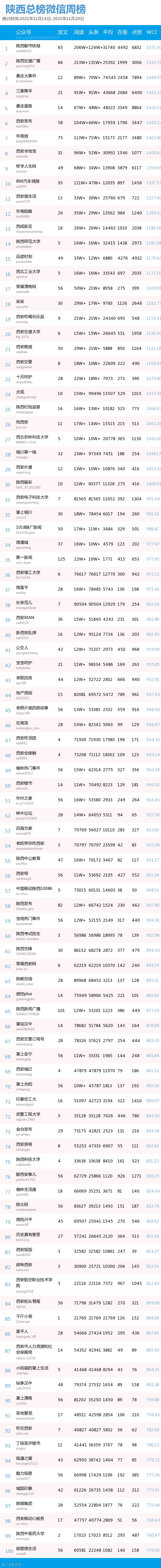 最新陕西自媒体微信公众号50强重磅出炉!TOP50上周共计发文2967篇,贡献阅读总量2208万+,在看总量5万+,阅读总量较上周有所下降,希望下期各大平台加油哟~(查看榜单可直接下滑)