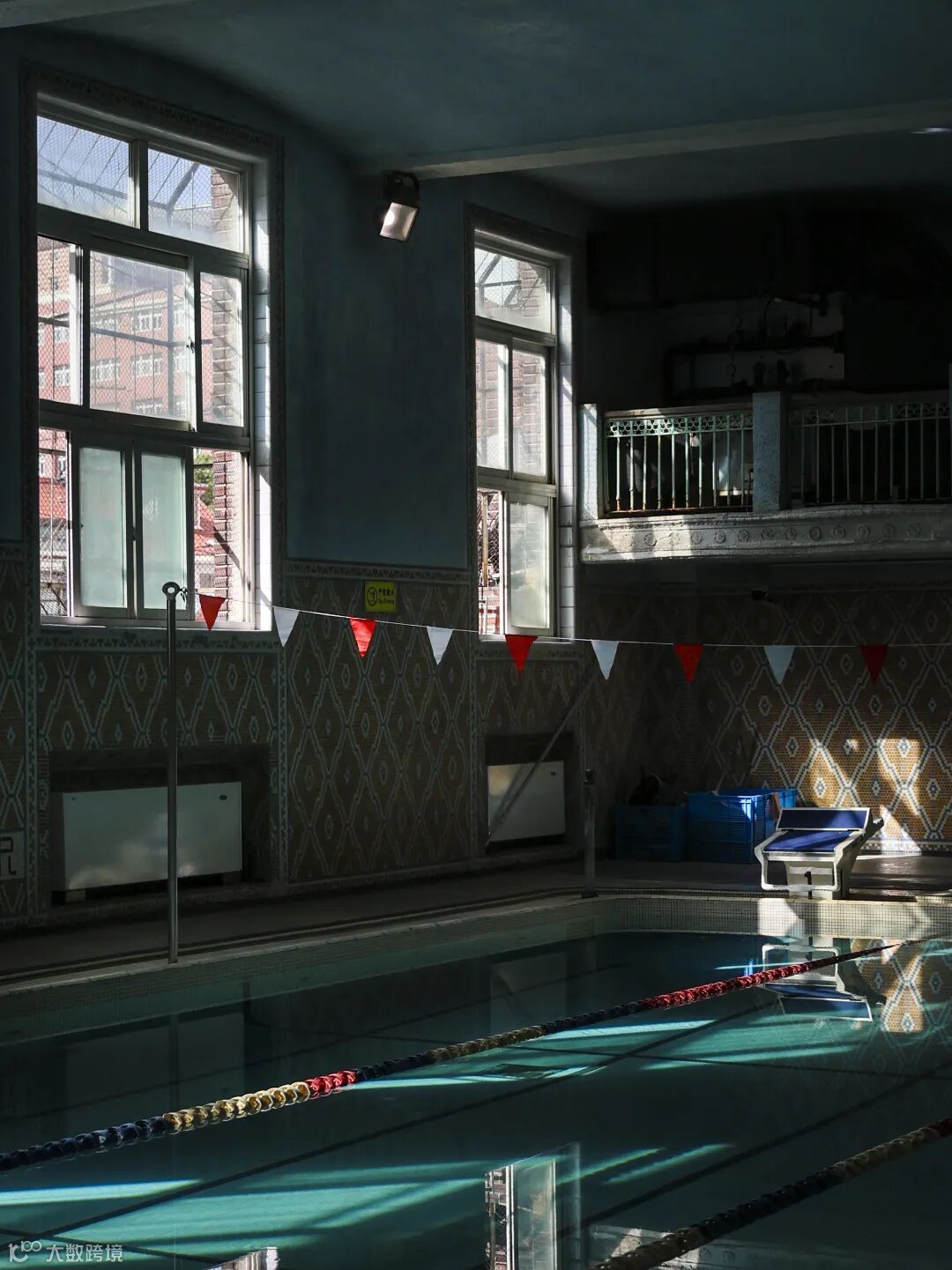 站在泳池边,没有安装任何空调设备的泳池大厅温度宜人,精心设计的建筑通风结构让这里近百年来,始终保持冬暖夏凉。马赛克拼砌的大厅墙壁,直至今日来看,都依然充满艺术美感。