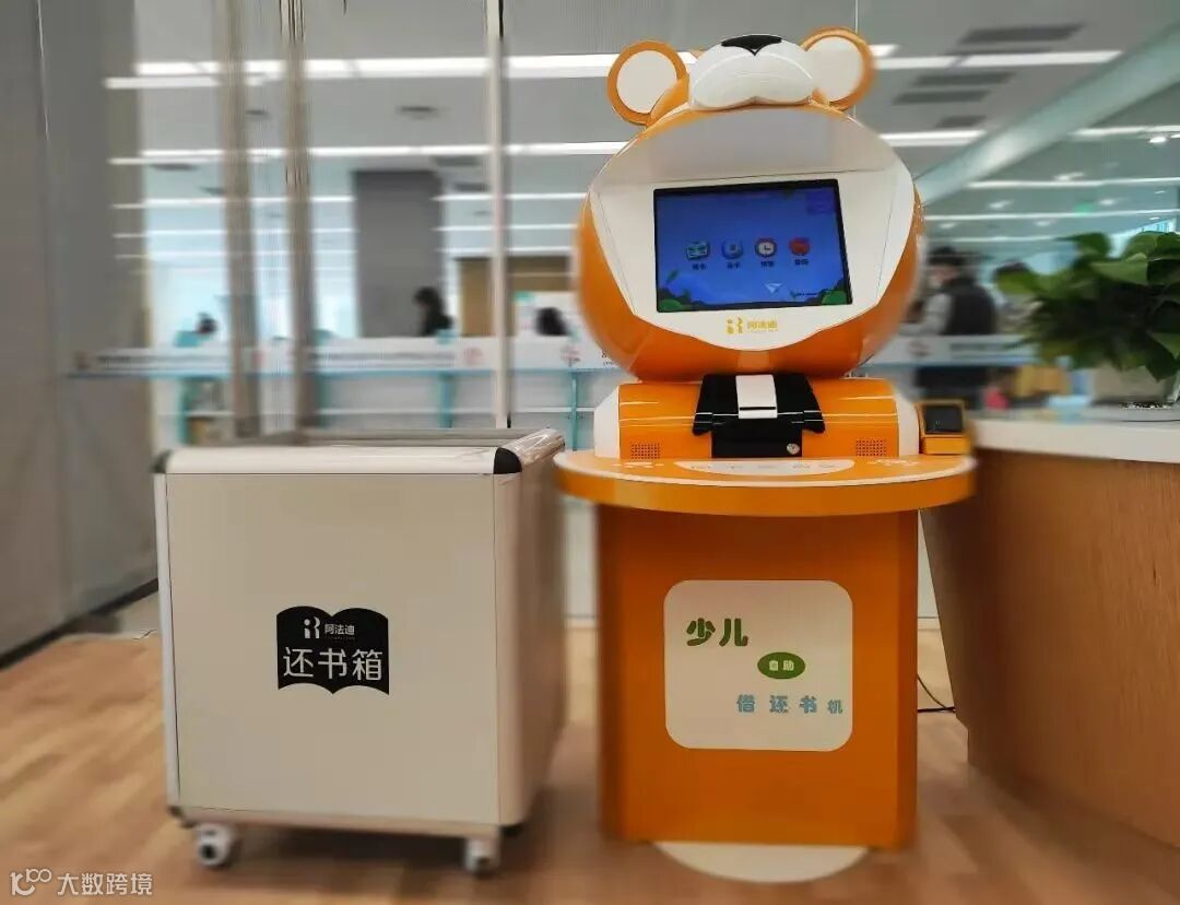 小熊造型,简单好用,上海阿法迪少儿自助借还机受到小读者喜爱。