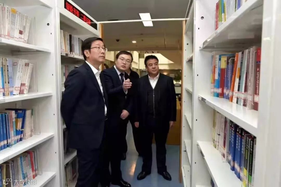 国家图书馆馆长饶权一行在陕西省图书馆考察调研上海阿法迪智能书架。