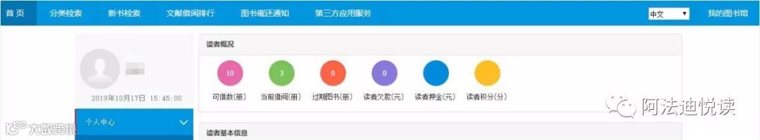 读者登录后可进行图书续借、预约、预借、荐购,查看积分,查看缴费情况,查看个人书评、个人书架,修改个人信息等多种操作。