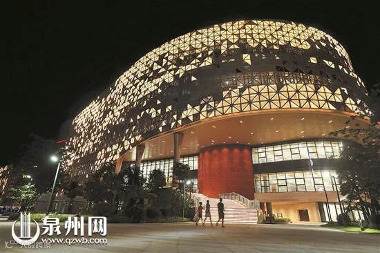 新馆以“知识浮岛”为设计理念,建筑风格融合刺桐花、东西塔、洛阳桥、九宫格、书法等元素。