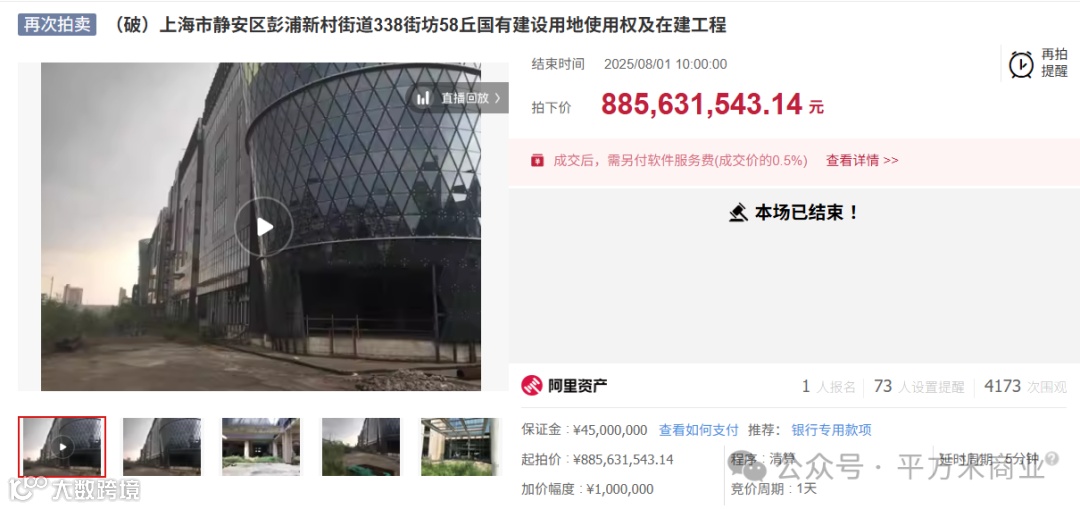 8月1日10时,上海司法拍卖平台落槌一宗重量级交易:静安区彭浦新村街道核心地块上,沉睡八年的“浦西佳程广场”以8.85亿元底价成交。令人惊叹的是,项目最新评估总价高达19.28亿元,成交价较评估值折让超10亿元。这场“抄底式”接盘,瞬间点燃沉寂多年的市场期待。