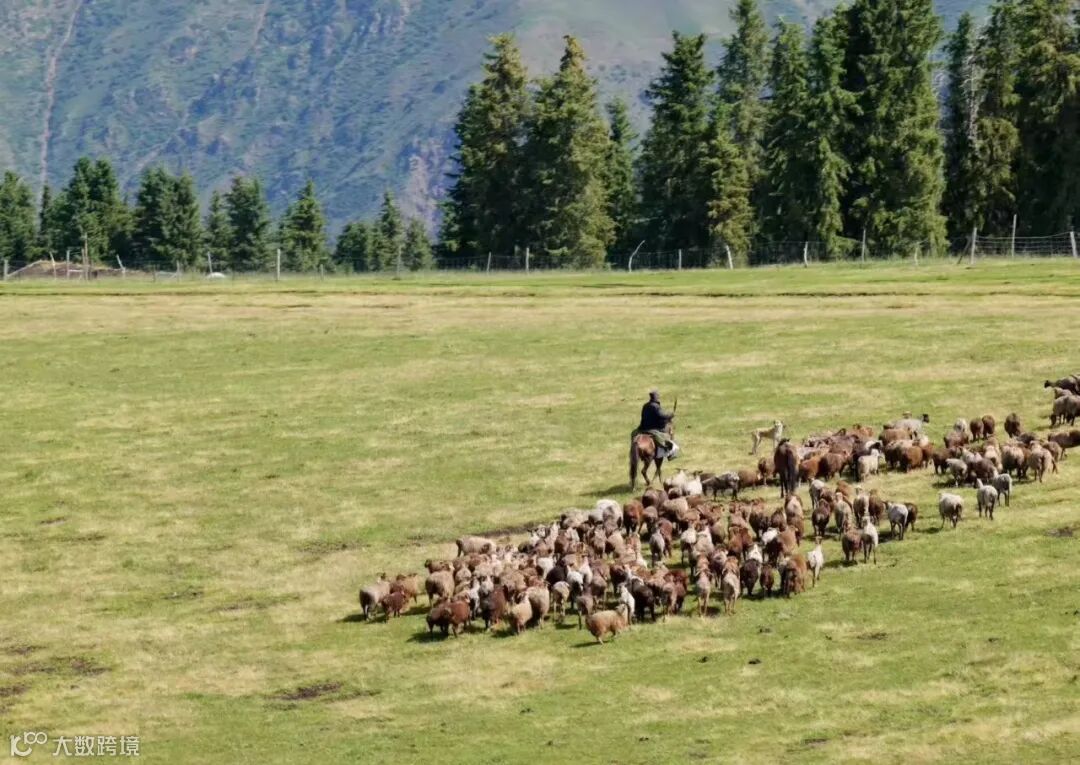 在哈萨克语称为"大平台子"的这片神奇草原,地貌竟如凝固的海洋——沟壑是浪涛的化石,墨绿杉林化作深海珊瑚群。六月的野花海掀起彩色浪涌,与雪山倒影在溪流中共舞。牧人扬鞭指向远方:"看!那策马踏浪的剪影,是我们草原的少年波塞冬。"马蹄溅起的花瓣,正把整片草甸染成流动的彩虹。
