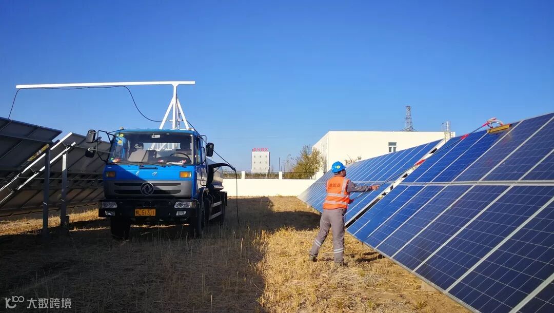 积极探索光伏组件的清洗方法,对乌中旗维检中心站原有洒水车进行改装,通过延长臂杆,连接4组高压水管,可实现4人同时清扫两列光伏组件,有效清理了光伏板表面的顽固积灰,使清洗更彻底、更洁净,避免了人力拖把清洗在组件上留下划痕、水渍。截至11月1日,累计完成6680块光伏板的清洗,提高了清洗效率,降低了人工成本。