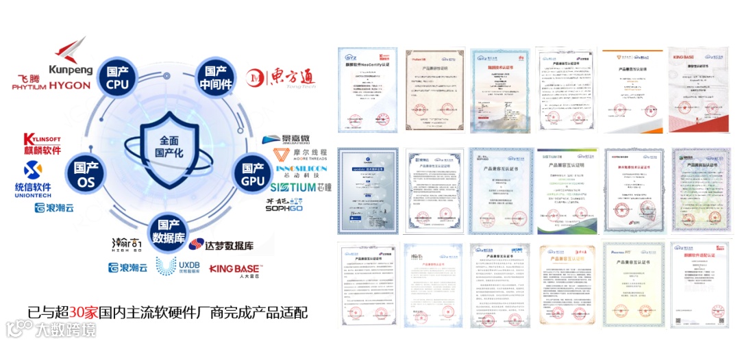 整机服务器方面:已与神州鲲泰等国产化服务器完成双向兼容适配和认证。