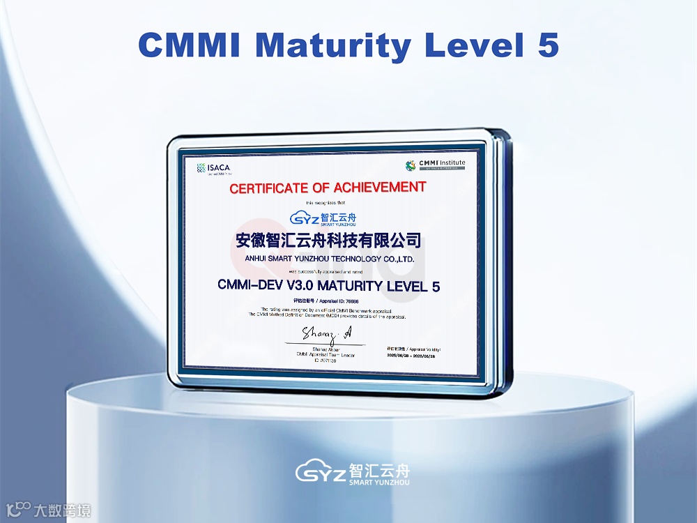 近日,智汇云舟在CMMI Institute认证机构的严格评审下,凭借优秀的研发实力与管理水平,成功通过国际软件工程领域最高等级认证——CMMI5级成熟度认证。