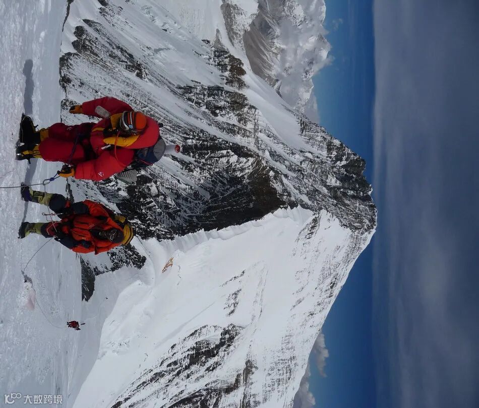登上珠峰的过程中需要在寒冷天气下攀爬悬崖峭壁