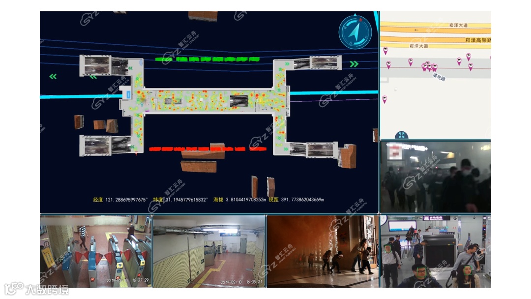 系统汇聚集成视频监控、智能识别、巡更、客流、设备、消防、机器人、应急指挥等业务子系统数据,并利用大数据、AI、模拟仿真等创新技术,实现在基于地铁站真实三维场景中的多种视频孪生创新业务应用。