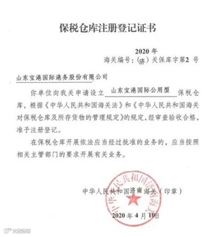 经中华人民共和国济南海关批准,山东宝港国际保税仓库正式注册登记使用。4月16日上午,在山东万达石化集团举行了宝港国际60万m³原油保税仓库授牌仪式。