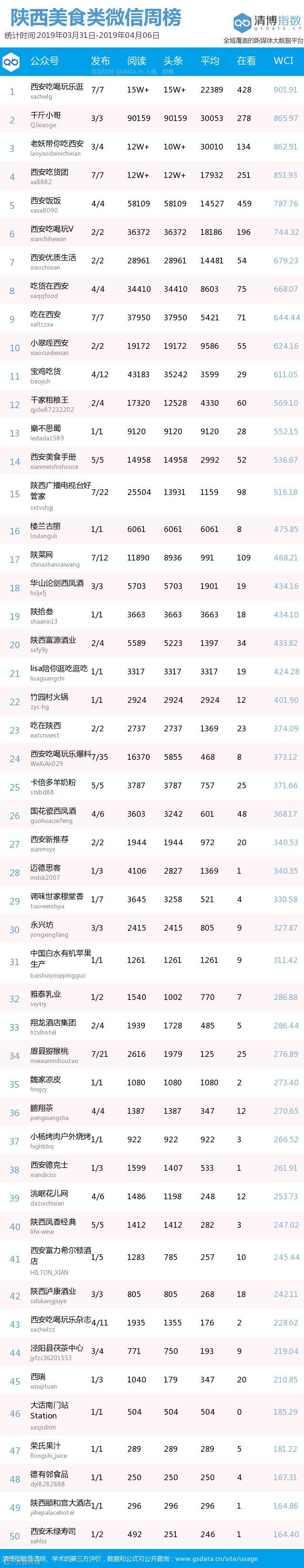 最新陕西美食类微信公众号50强重磅出炉!TOP50上周共计发文252篇,阅读总量达到90万+,好看总量达到2774。数据相比上周有所上升,期待下期各大平台继续加油哦!