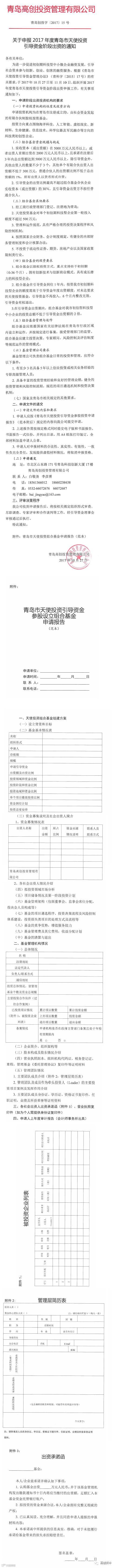 关于申报2017年度青岛市天使投资引导资金阶段出资的通知