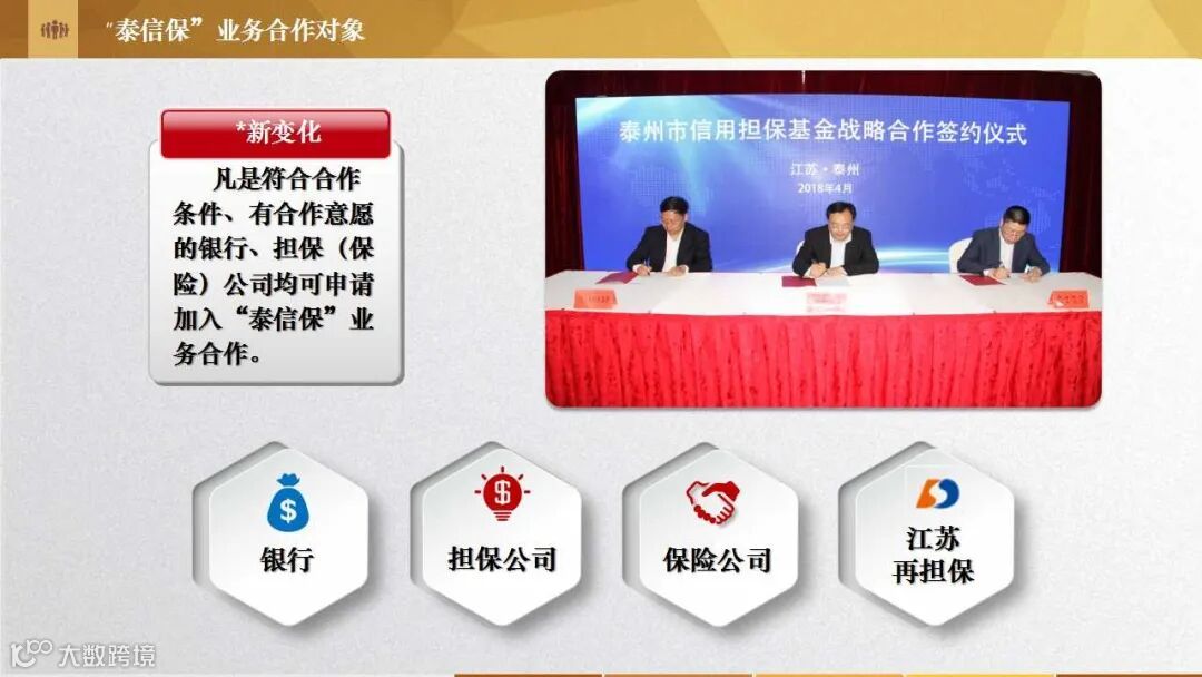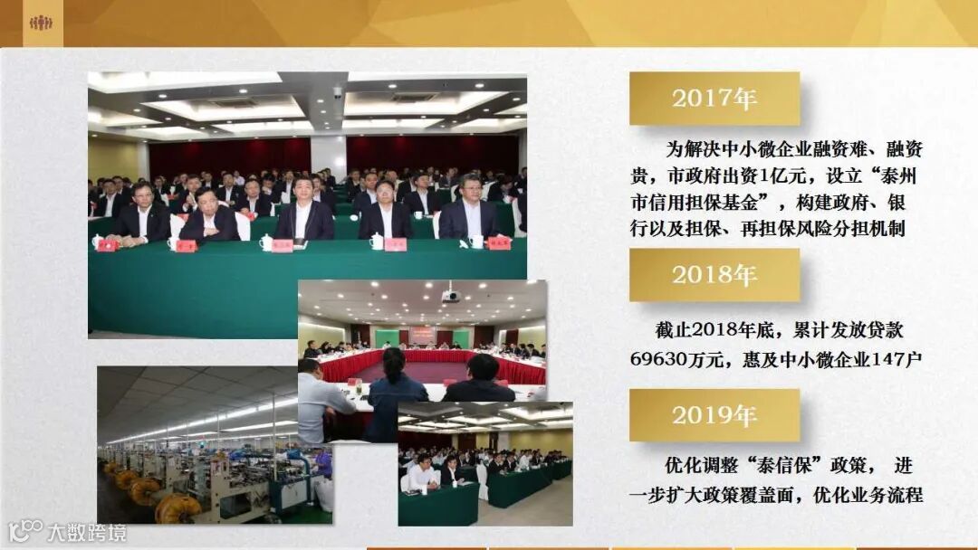 为着力缓解中小微企业融资难、融资贵问题,实现中小微企业可持续发展和实体经济转型升级,泰州市政府成立泰州市信用担保基金(以下简称“泰信保”)。为中小微企业信贷提供增信分险功能,引导更多金融资源服务中小微企业,促进中小微企业金融服务向纵深发展。