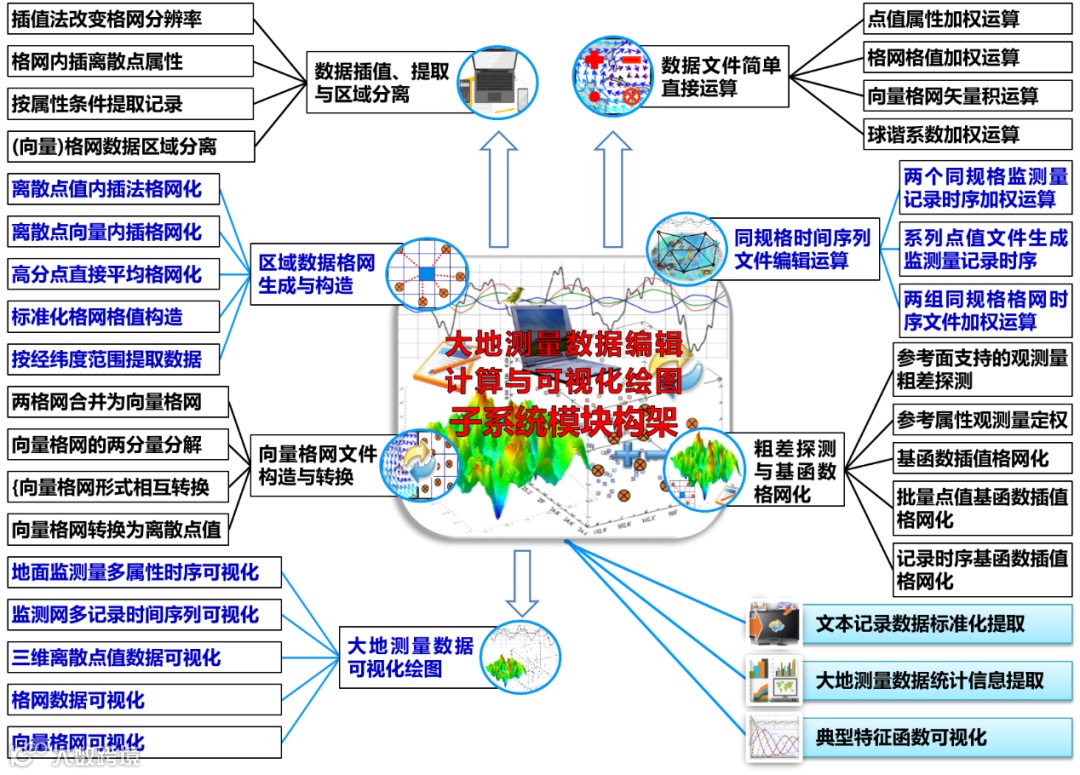 该程序是一种用于地球物理大地测量监测科学计算的Windows程序包,包含50多个win64程序和600多个功能模块。都在Visual studio 2017 x64集成环境中,采用QT C++(界面)、Intel Fortran(核心功能模块)和mathGL C++(数据可视化)代码级混合编程技术研发。用户可根据工程或研究需要,设计个性化技术流程,灵活组织有关功能模块,完成地面及固体地球外空间各种潮汐/非潮汐影响监测计算,全球或区域形变场/时变重力场/地面稳定性/陆地水/地表动力环境变化监测,以及多源异构大地测量深度融合等工作。