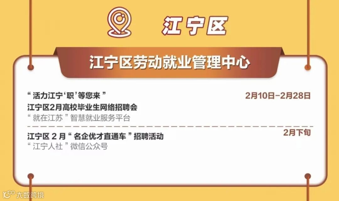 为贯彻落实国家和省市决策部署,扎实做好春节后劳动者换岗流动高峰期和企业开工复产关键期的就业服务工作,江宁区将在节后首个工作日(2月5日,初八)举办以“春风送岗促就业 精准服务暖民心”为主题的省、市、区三级联动新春专场大型招聘活动,全力促就业、保民生、助发展。