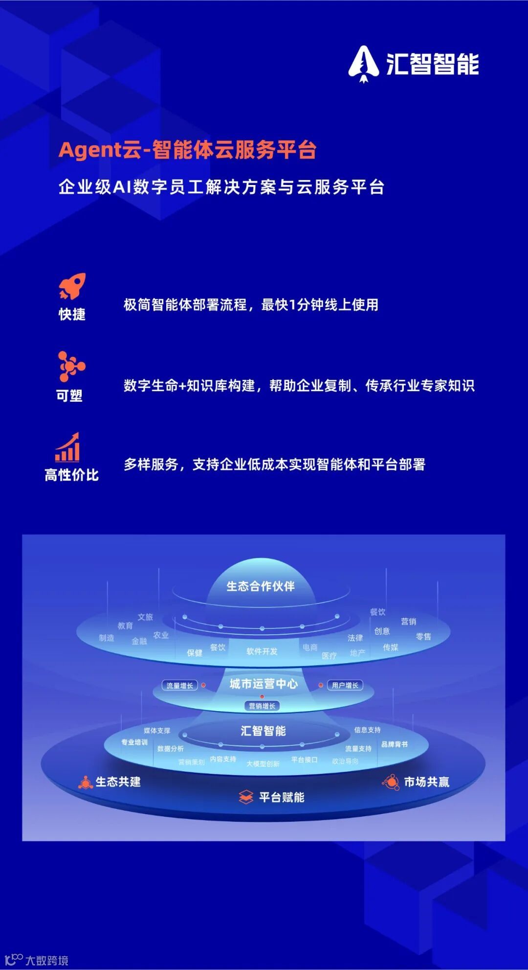 汇智智能,作为行业领军企业,以其自研的CarrotAI大模型和拥有专利的“数字生命”技术为基础,推出了Agent云智能体云服务平台。