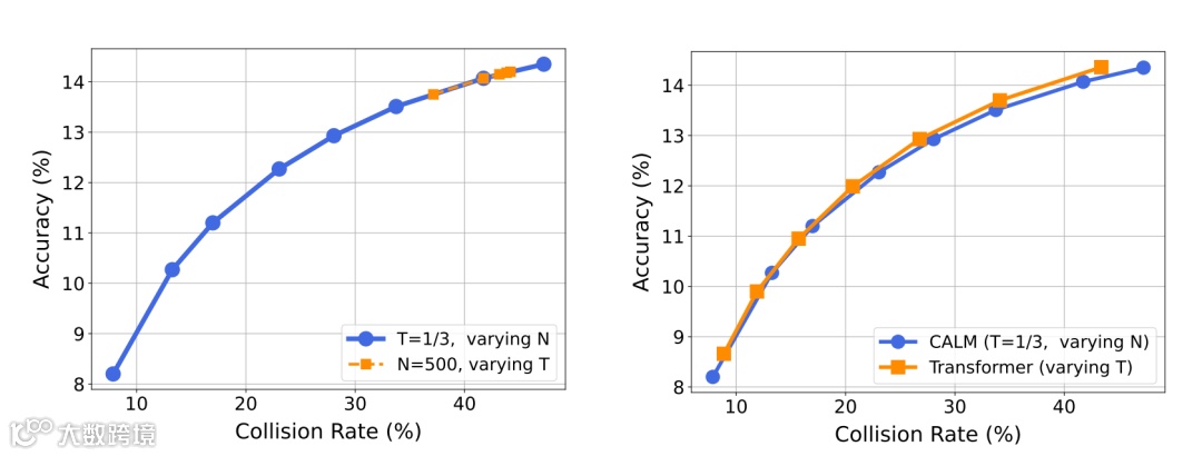 轨迹复现能力:通过调整CALM的批次大小N,可以精确复现传统Transformer通过调整softmax温度所实现的准确率-多样性权衡轨迹。