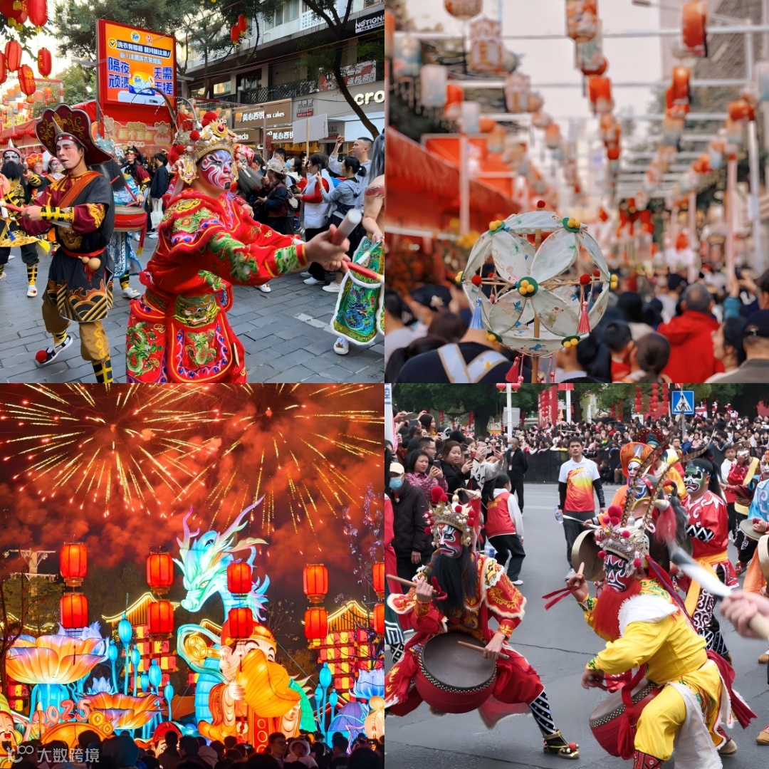 全国各地烟花秀、花市灯会、英歌汇演等“刷屏”各大社媒、朋友圈,节日气氛空前高燃。