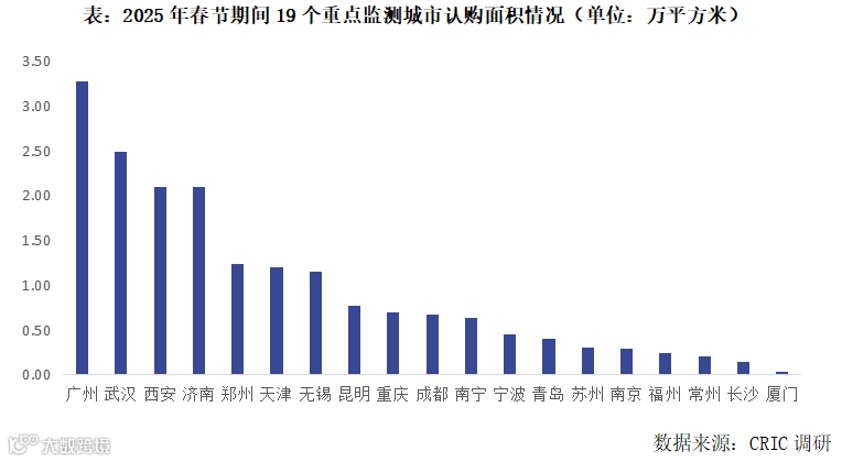 据CRIC调研数据显示,重点监测的19城总认购面积达到了18.43万㎡,