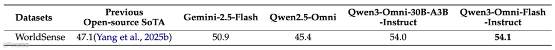 表8:Qwen3-Omni-Instruct与其他非推理基线的音视频到文本性能