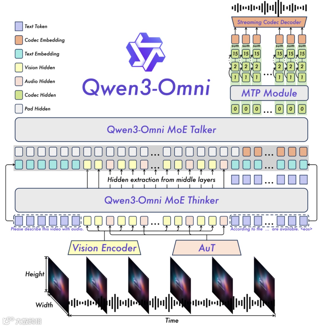Qwen3-Omni基于Qwen2.5-Omni中引入的Thinker-Talker架构,并进行了五个关键升级。